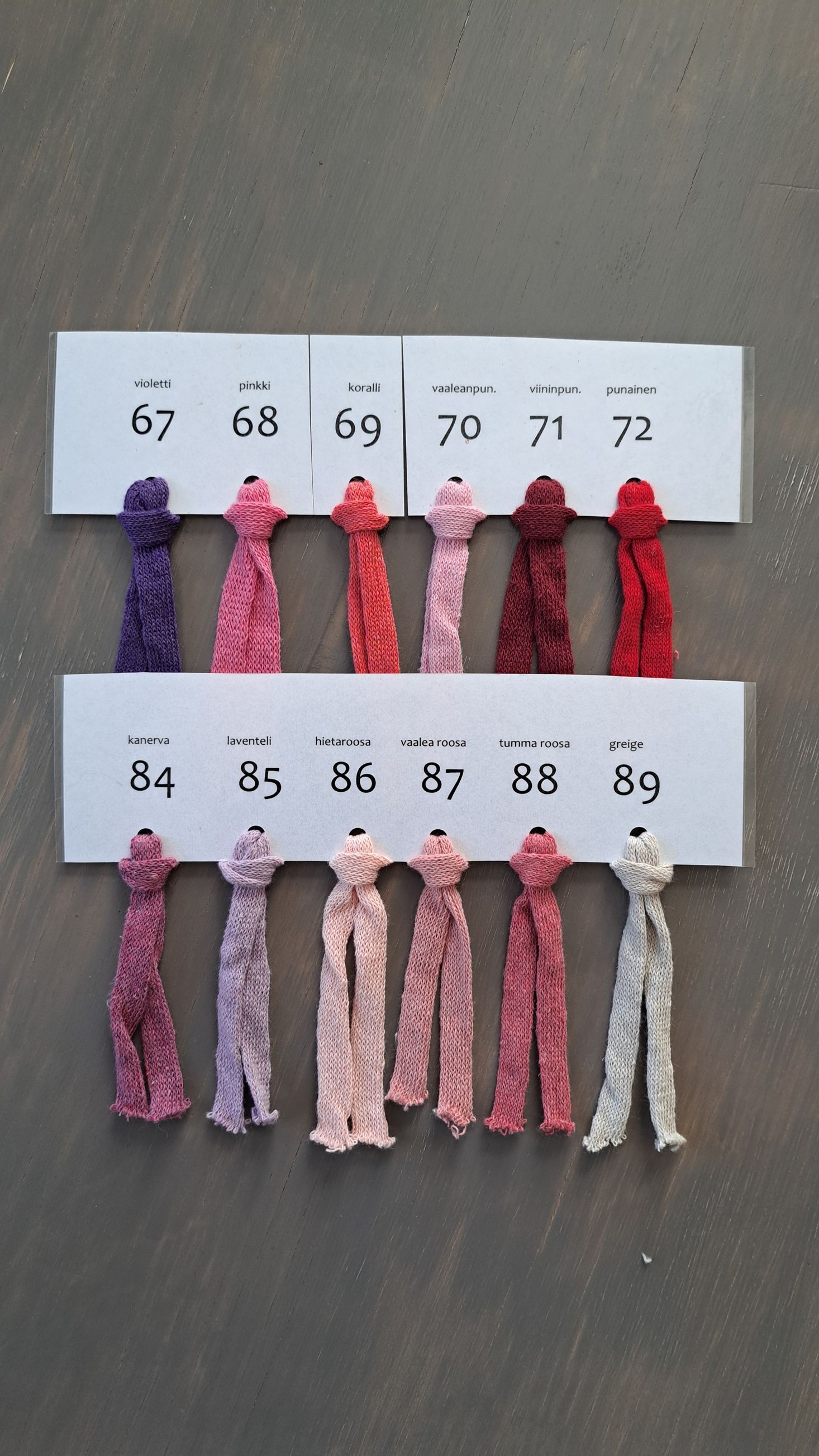 *Sävyjen sävyeroja voi esiintyä näytöllä. Tarkemmat sävymallit nähtävissä kutomolla.